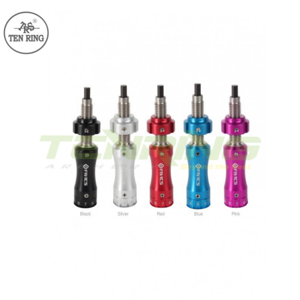 The thread cylinder is made out of high-grade refined steel, the springs out of stainless harmonic steel, the notching scale cylinder and the slotted nut out of anodized aluminum. The material used for the Plunger Pin offers excellent glide- and wear-behavior by using aluminum-, aluminum-carbon- or carbon-arrows.