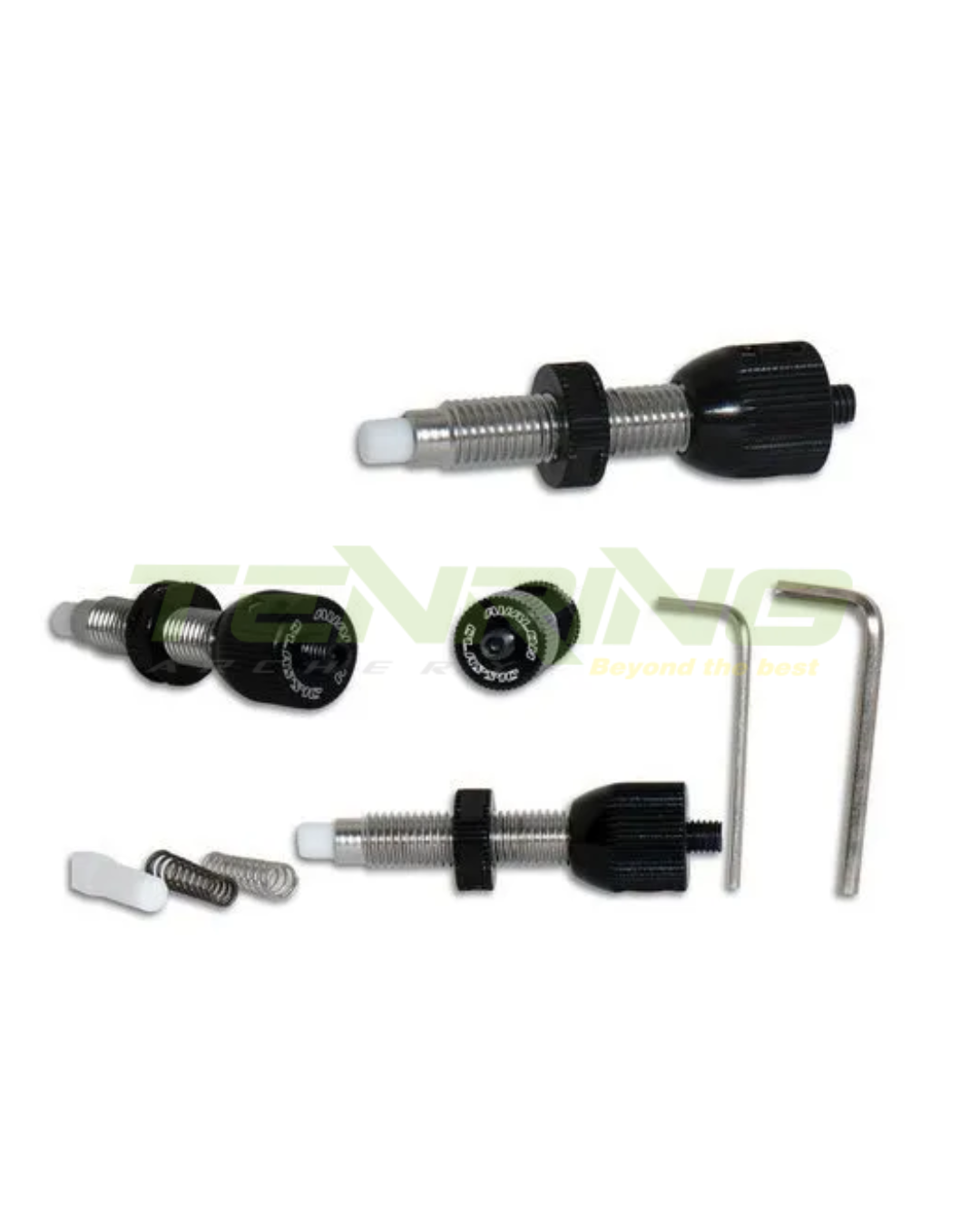 - Supplied with two Allen keys for adjustment, two spare springs to adjust the button tension and a spare button tip